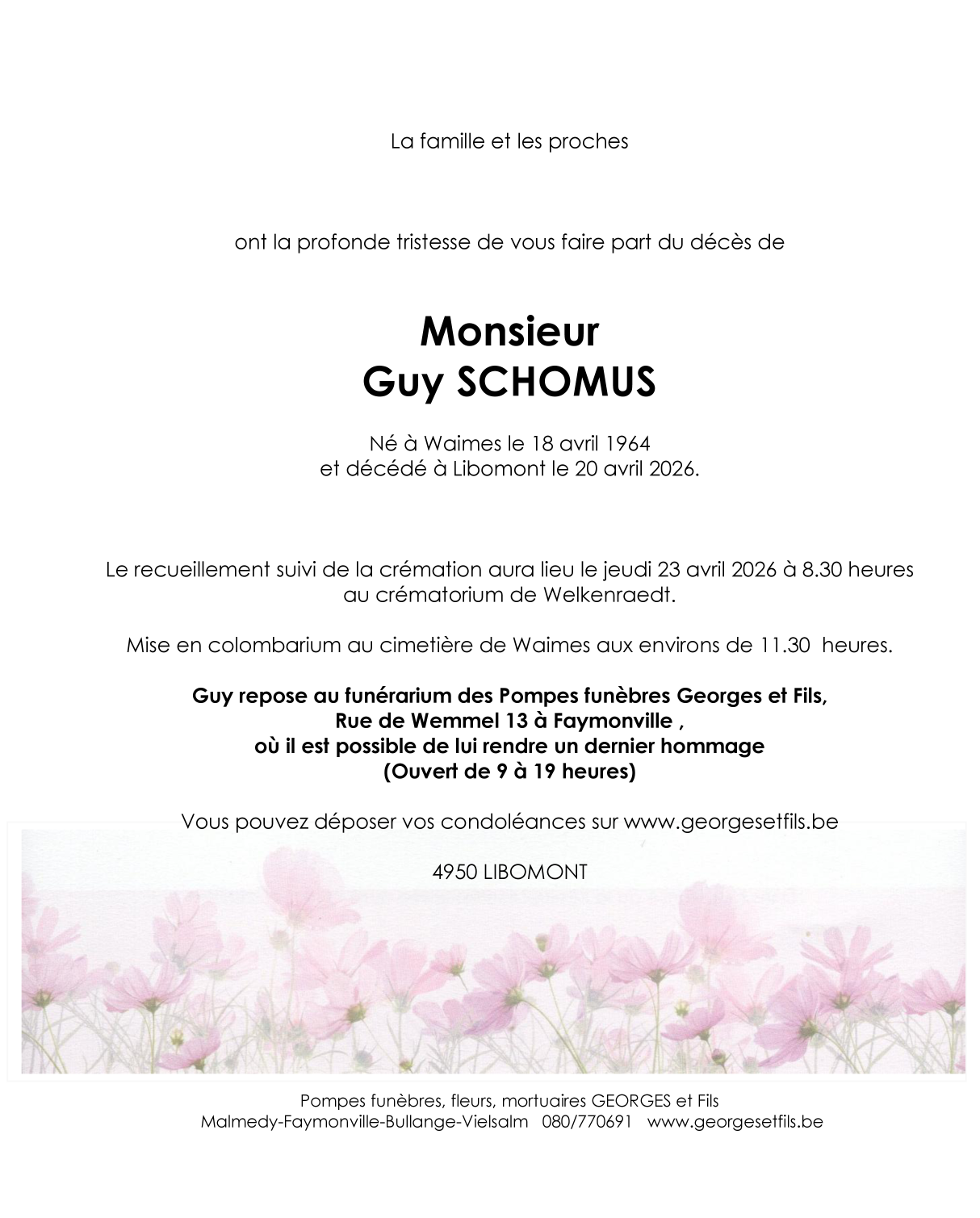 Avis de décès de Monsieur Guy SCHOMUS