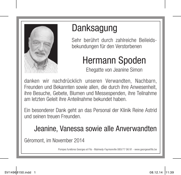 Décédé à Malmedy (4960) le lundi 3 novembre 2014 à l'âge de 63 ans