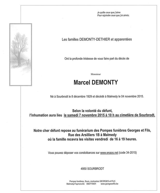 Décédé à Malmedy (4960) le mercredi 4 novembre 2015 à l'âge de 85 ans