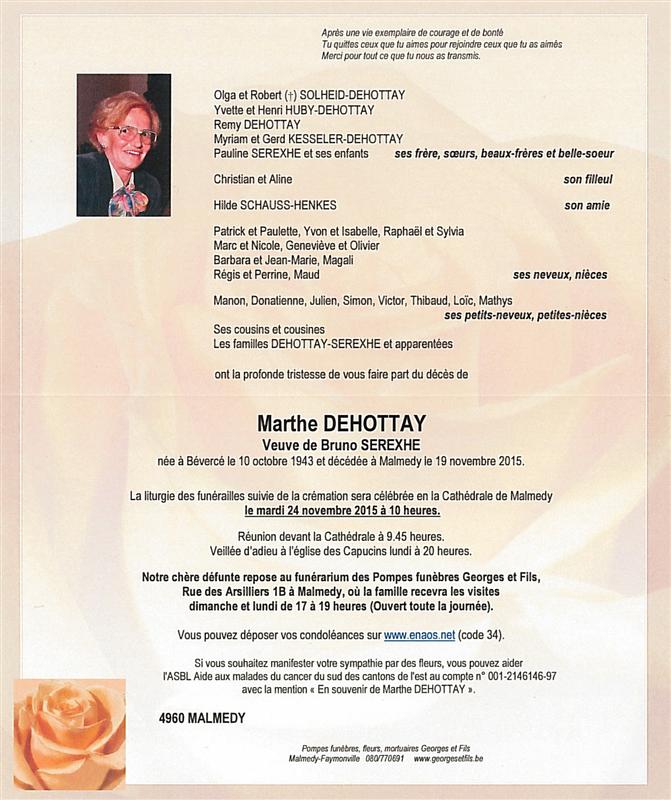 Madame Marthe DEHOTTAY veuve de Bruno SEREXHE