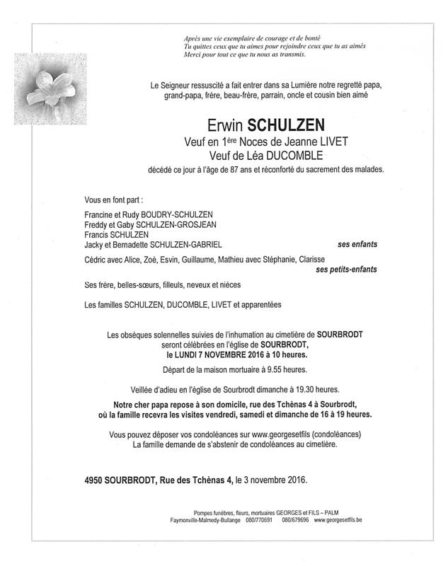 Décédé à Waimes (4950) le jeudi 3 novembre 2016 à l'âge de 87 ans