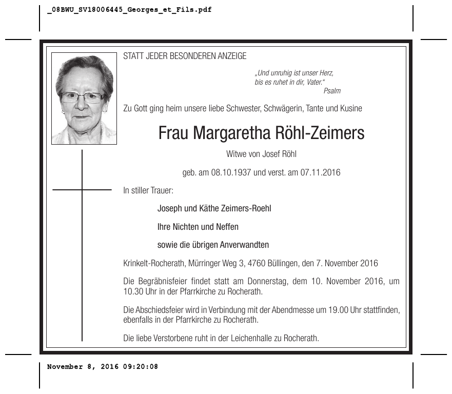 Décédé à Malmedy (4960) le lundi 7 novembre 2016 à l'âge de 79 ans