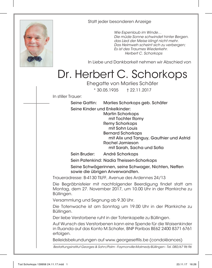 Décédé à Liège (4000) le mercredi 22 novembre 2017 à l'âge de 82 ans