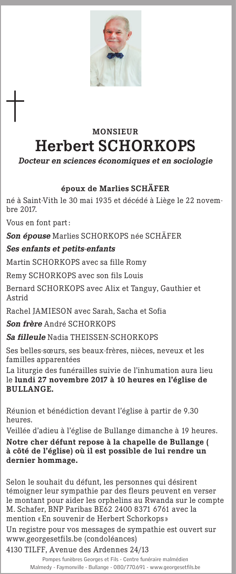 Décédé à Liège (4000) le mercredi 22 novembre 2017 à l'âge de 82 ans