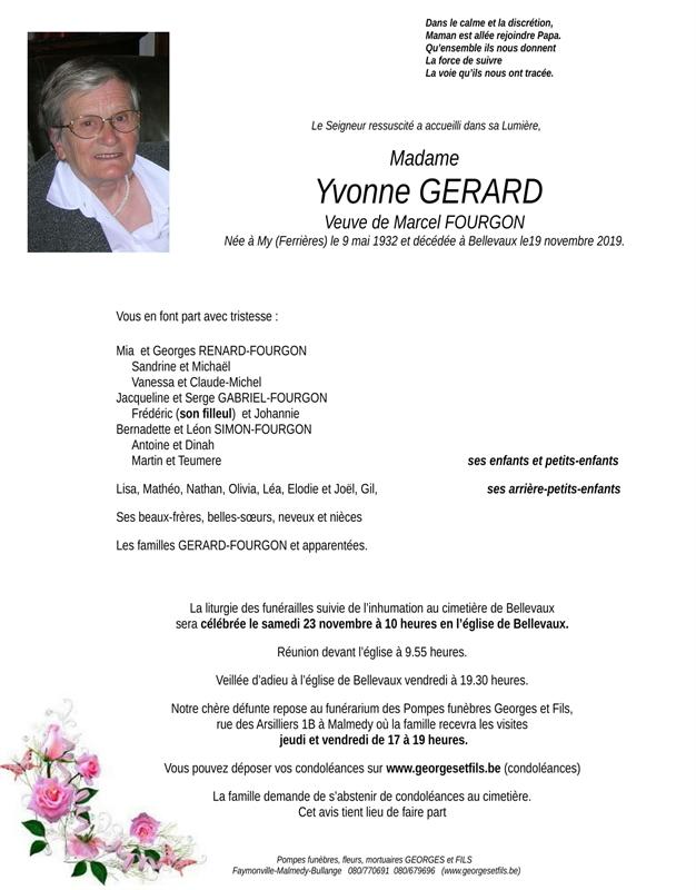 Décédée à Bellevaux-Ligneuville (4960) le mardi 19 novembre 2019 à l'âge de 87 ans