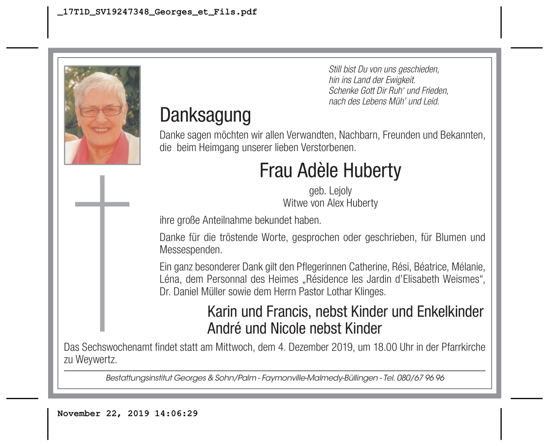 Décédée à Waimes (4950) le lundi 21 octobre 2019 à l'âge de 83 ans