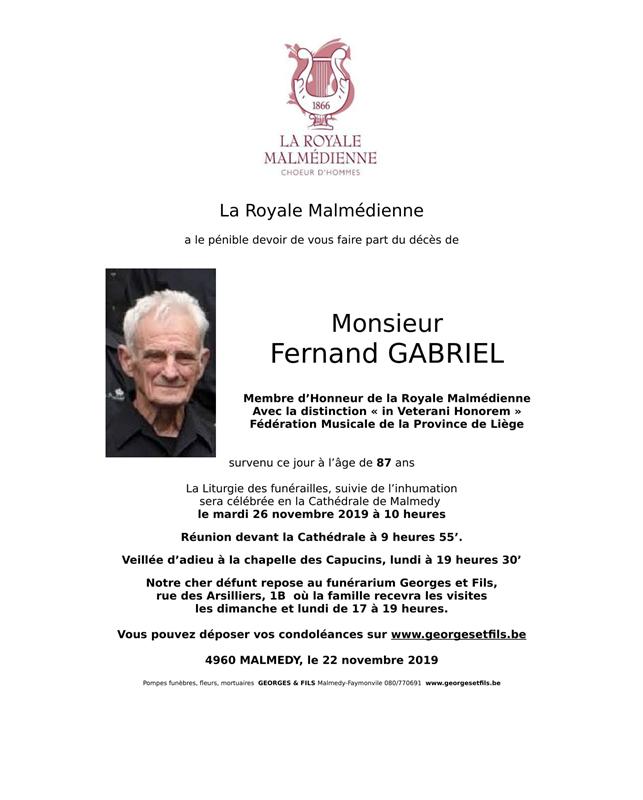Décédé à Spa (4900) le vendredi 22 novembre 2019 à l'âge de 87 ans