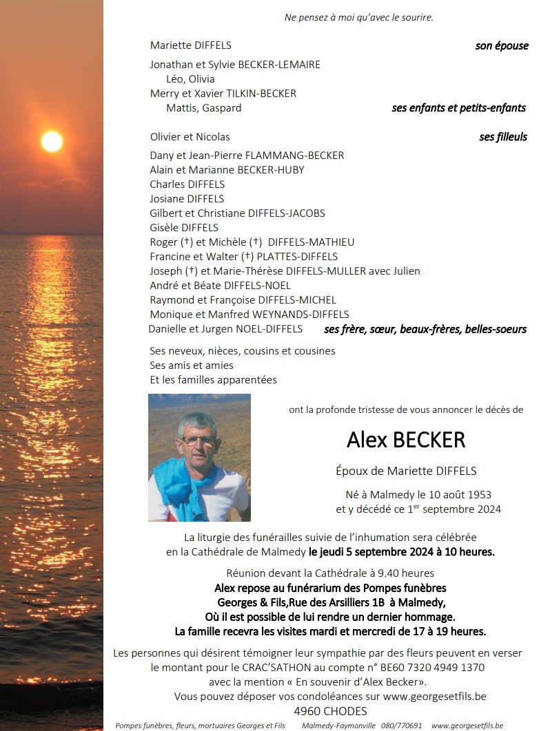Décédé à Malmedy (4960) le dimanche 1 septembre 2024 à l'âge de 71 ans