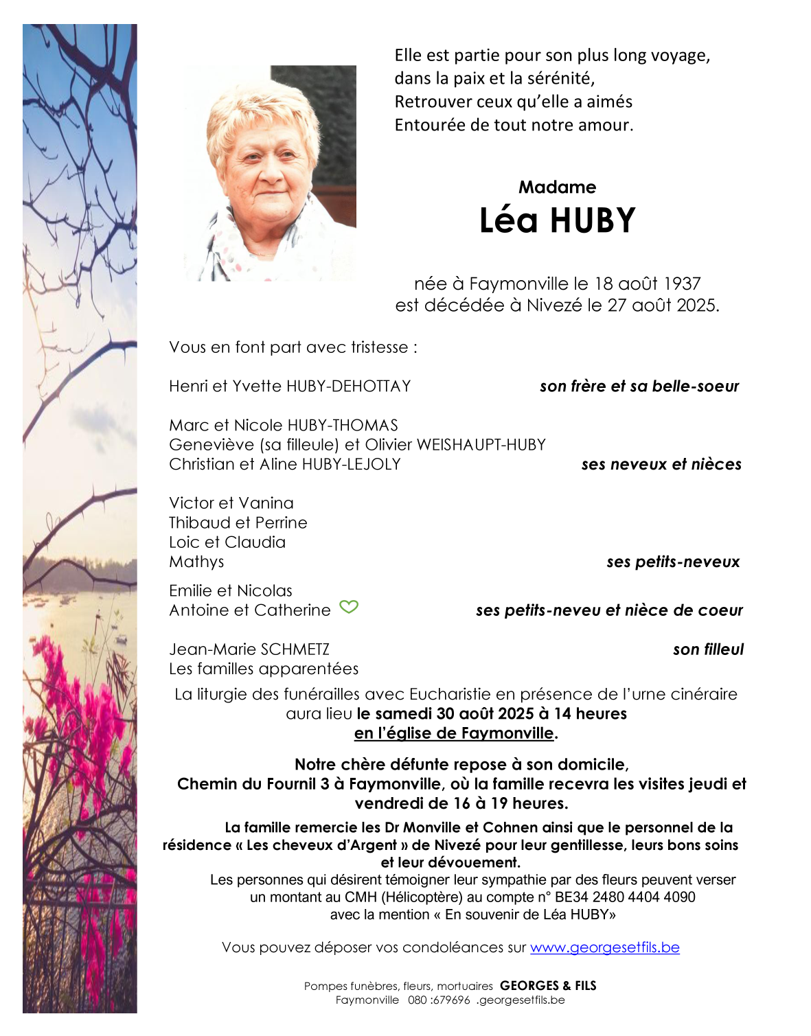 Née à Faymonville (4950) le mercredi 18 août 1937