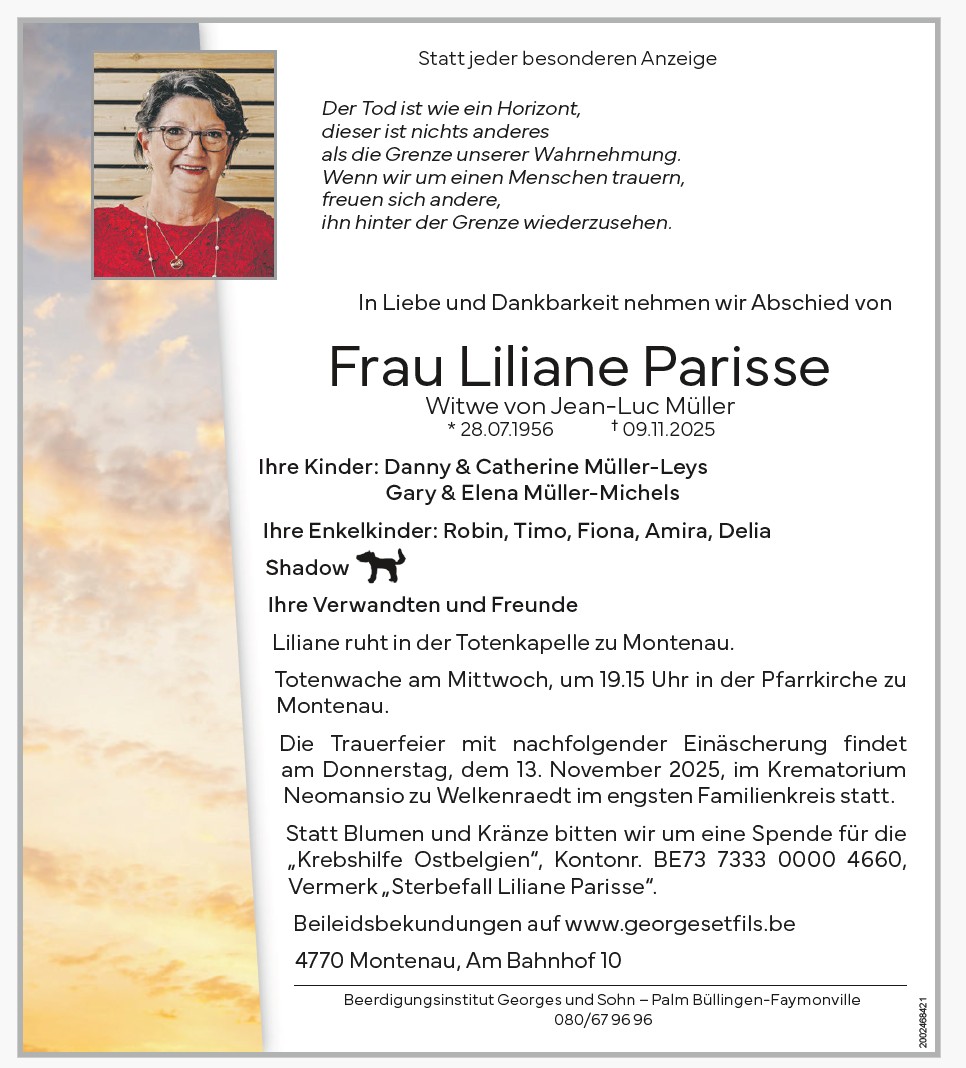 Décédée à Verviers (4800) le dimanche 9 novembre 2025 à l'âge de 69 ans