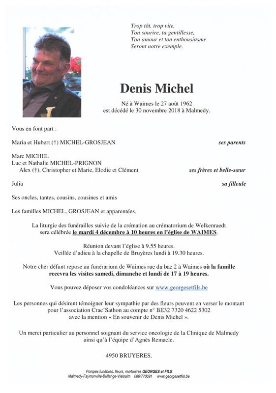 Décédé à Malmedy (4960) le vendredi 30 novembre 2018 à l'âge de 56 ans