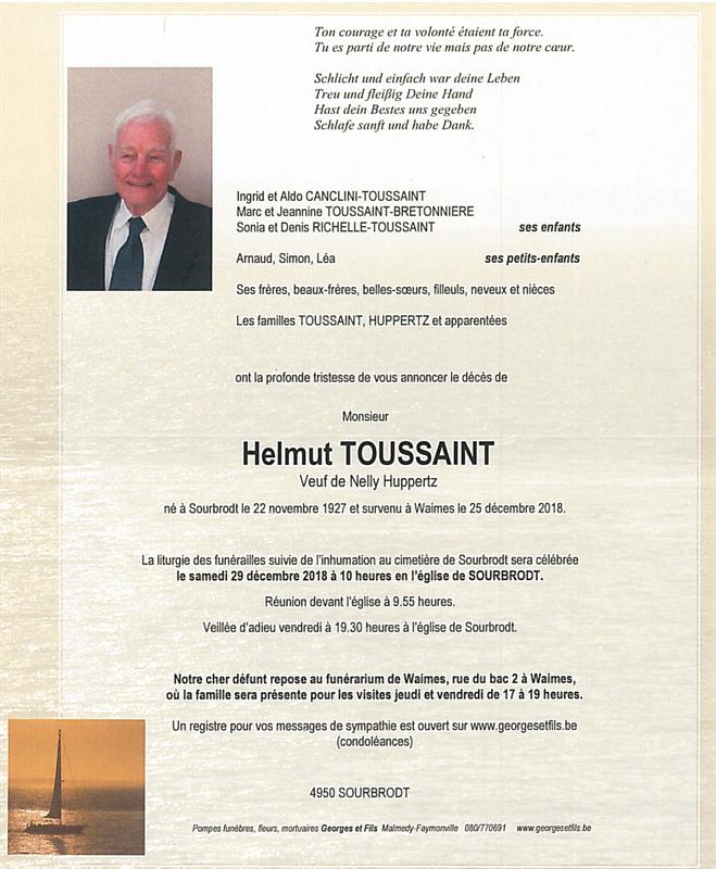 Décédé à Waimes (4950) le mardi 25 décembre 2018 à l'âge de 91 ans