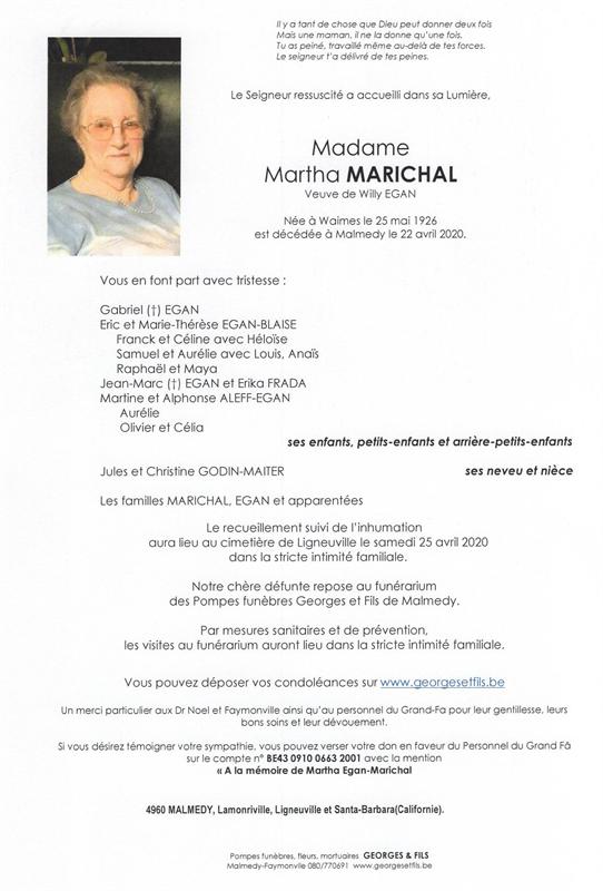 Madame Martha MARICHAL veuve de Willy EGAN