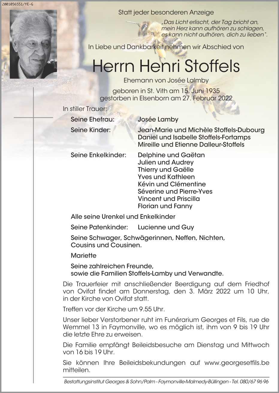 Décédé à Elsenborn (4750) le dimanche 27 février 2022 à l'âge de 86 ans