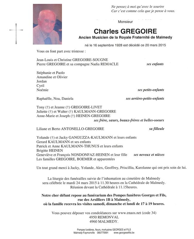 Décédé à Malmedy (4960) le vendredi 20 mars 2015 à l'âge de 86 ans