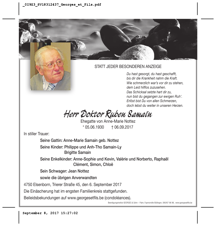Décédé à Elsenborn (4750) le mercredi 6 septembre 2017 à l'âge de 87 ans