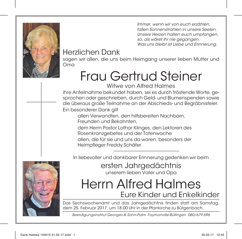 Madame Gertrud STEINER veuve de Alfred HALMES