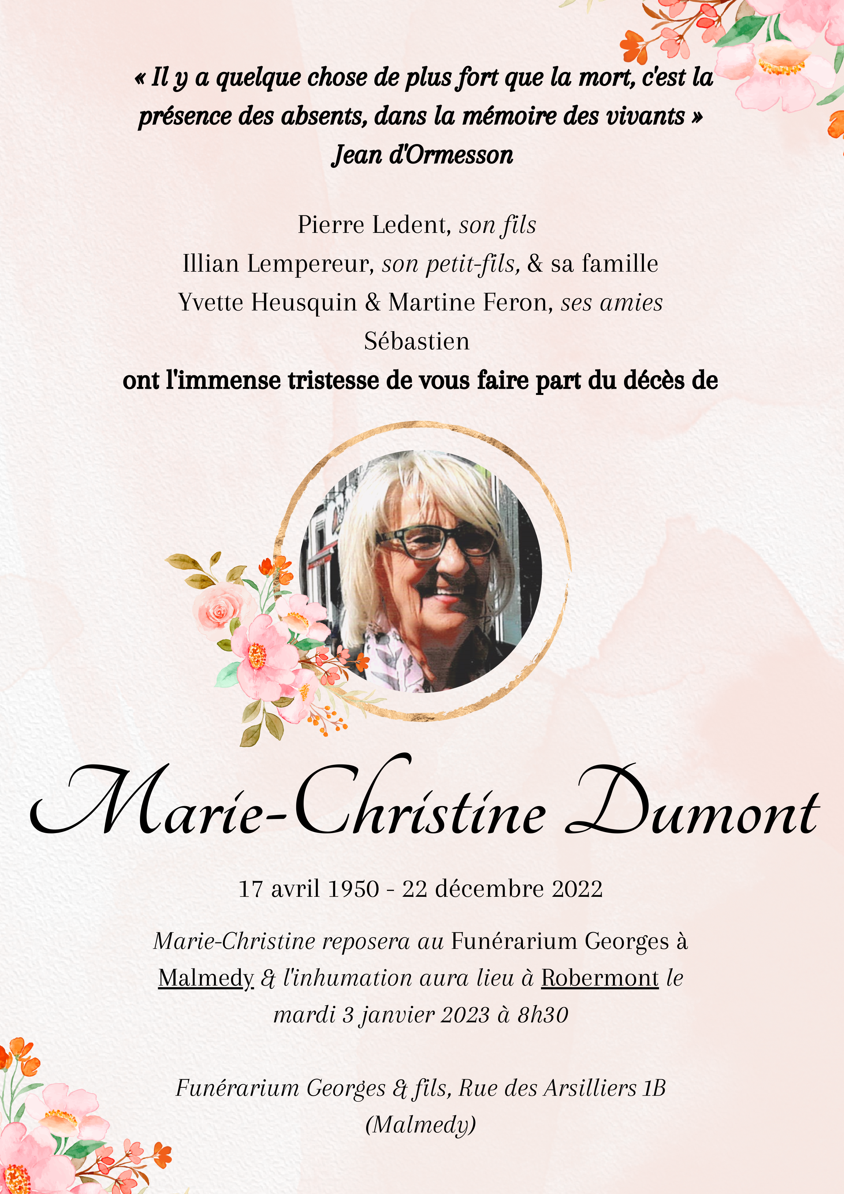 Décédée à Liège (4000) le jeudi 22 décembre 2022 à l'âge de 72 ans