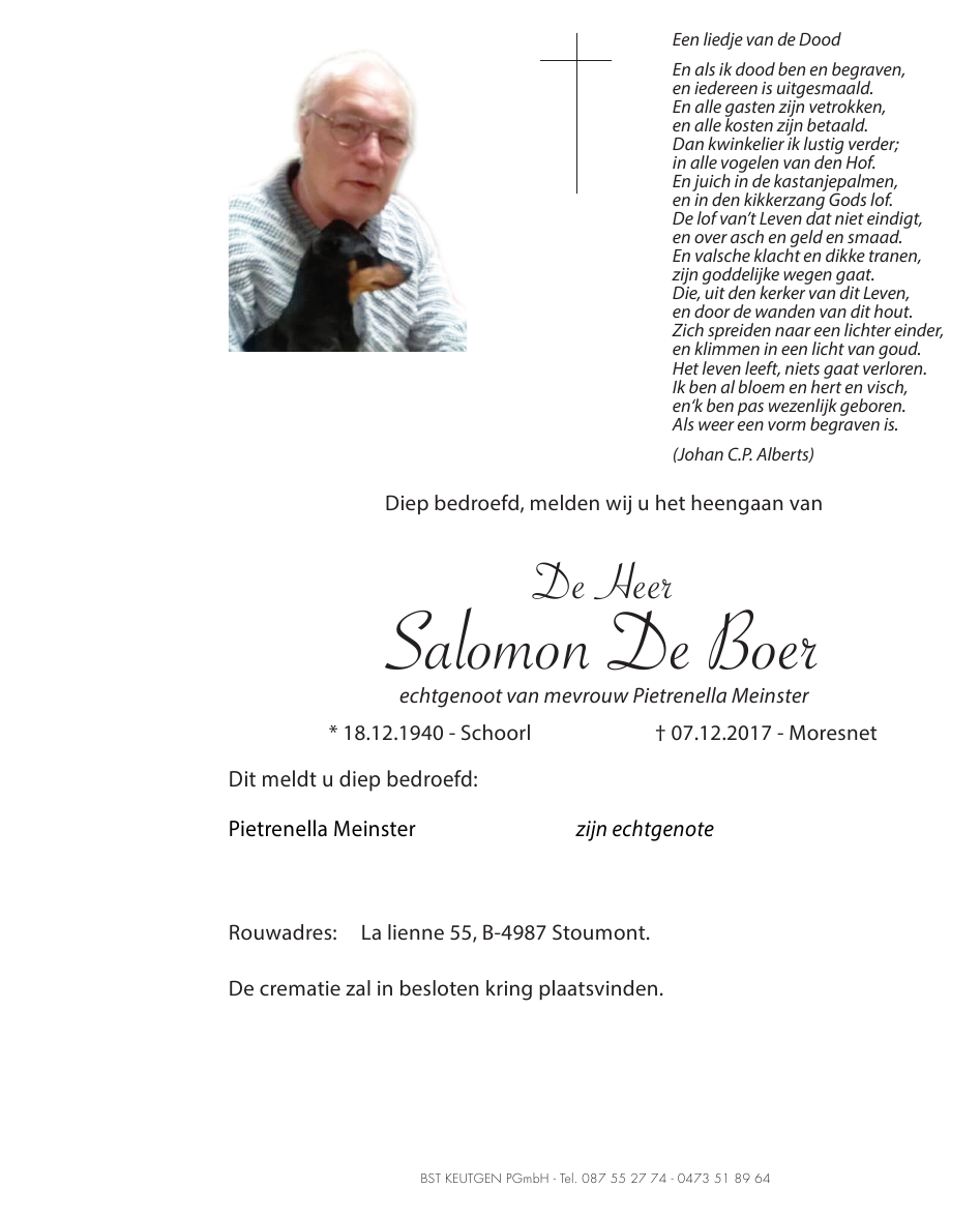 Décédé à Moresnet (4850) le jeudi 7 décembre 2017 à l'âge de 77 ans