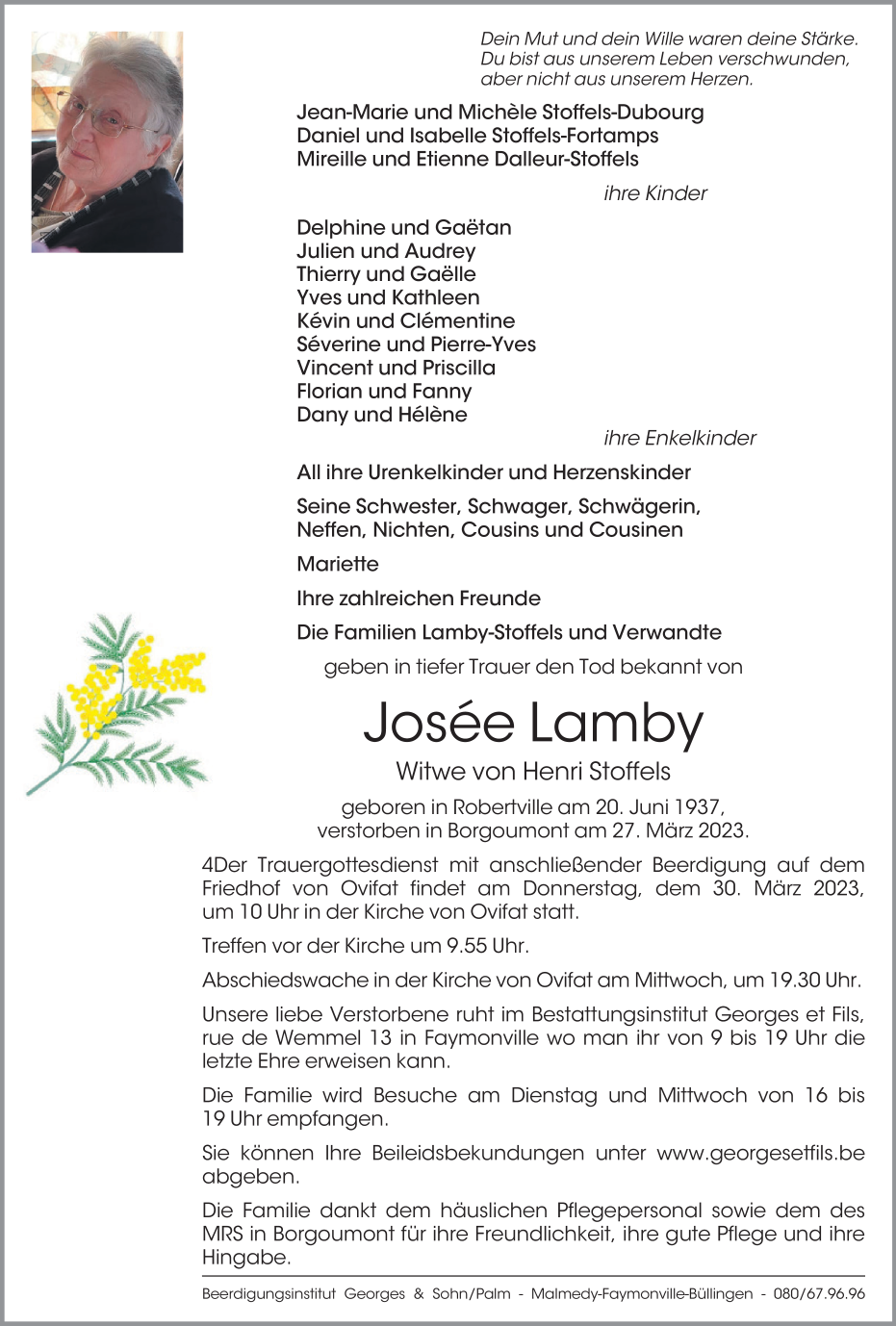Décédée à Stoumont (4987) le lundi 27 mars 2023 à l'âge de 85 ans
