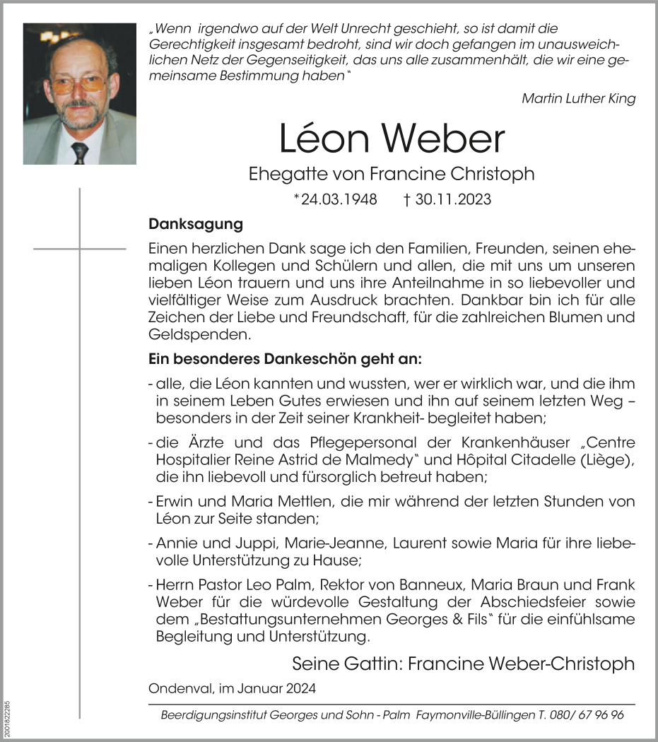 Décédé à Liège (4000) le jeudi 30 novembre 2023 à l'âge de 75 ans