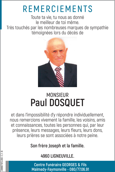 Né à Bellevaux-Ligneuville (4960) le lundi 16 février 1931