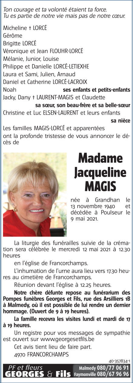 Madame Jacqueline MAGIS