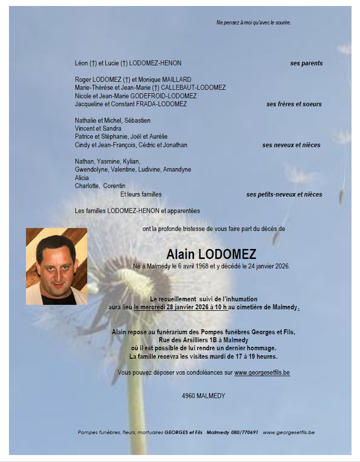 Décédé à Malmedy (4960) le samedi 24 janvier 2026 à l'âge de 57 ans