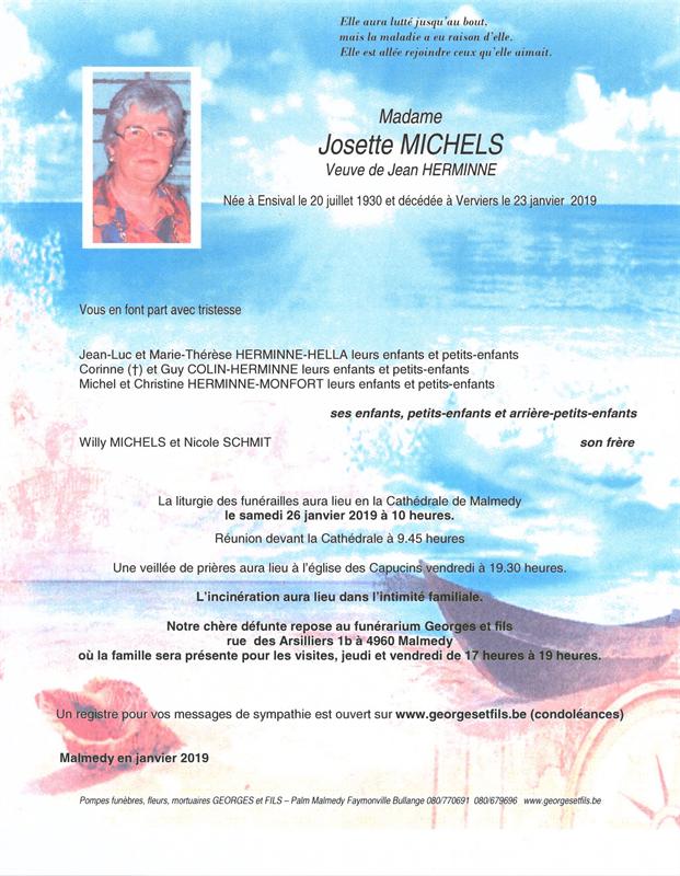 Décédée à Verviers (4800) le mercredi 23 janvier 2019 à l'âge de 88 ans