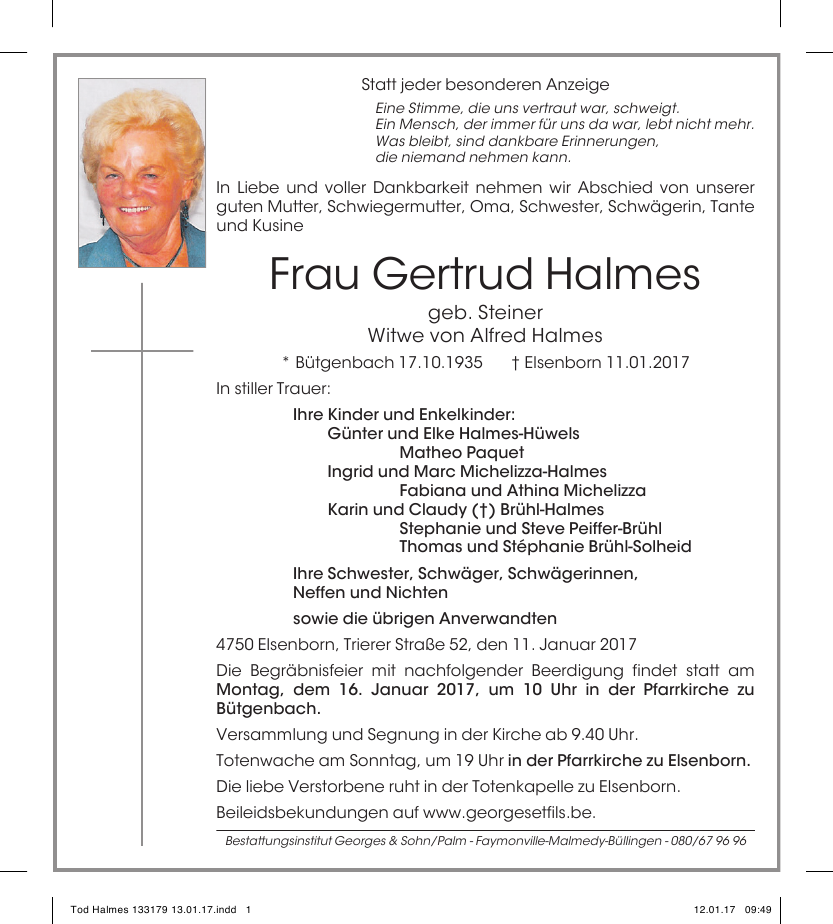 Madame Gertrud STEINER veuve de Alfred HALMES