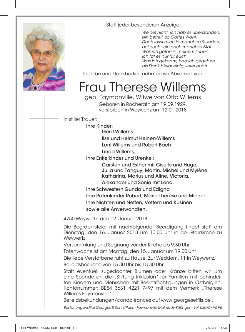 Madame Therese WILLEMS geb. FAYMONVILLE