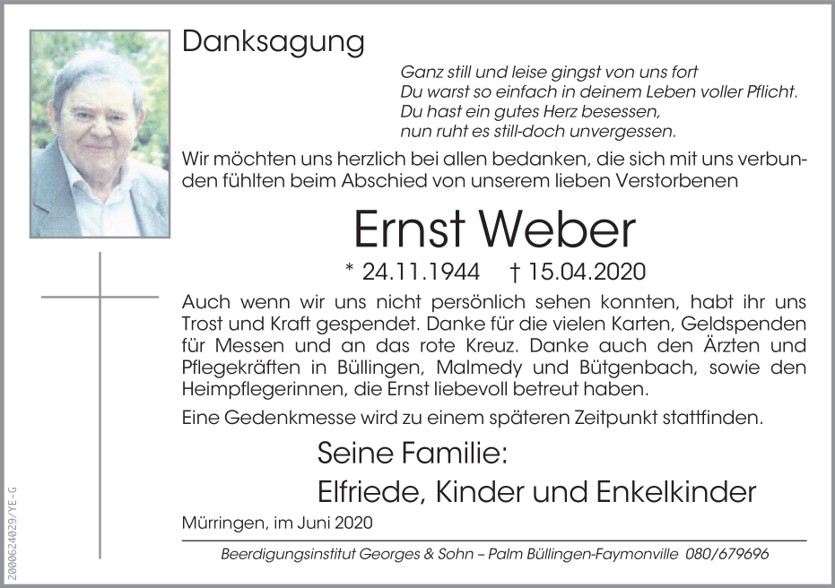 Décédé à Malmedy (4960) le mercredi 15 avril 2020 à l'âge de 75 ans