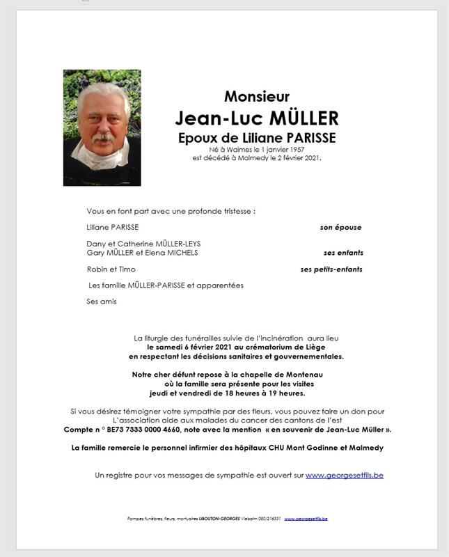 Décédé à Malmedy (4960) le mardi 2 février 2021 à l'âge de 64 ans