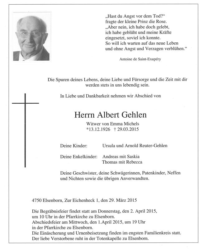Décédé à Elsenborn (4750) le dimanche 29 mars 2015 à l'âge de 88 ans