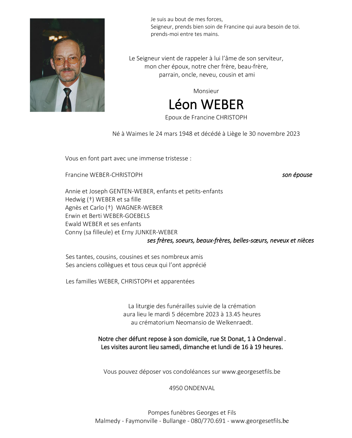Né à Waimes (4950) le mercredi 24 mars 1948