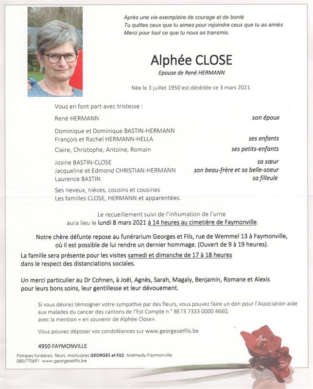Madame Alphée CLOSE épouse de René HERMANN