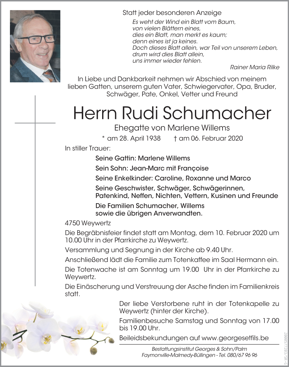 Décédé à Malmedy (4960) le jeudi 6 février 2020 à l'âge de 81 ans