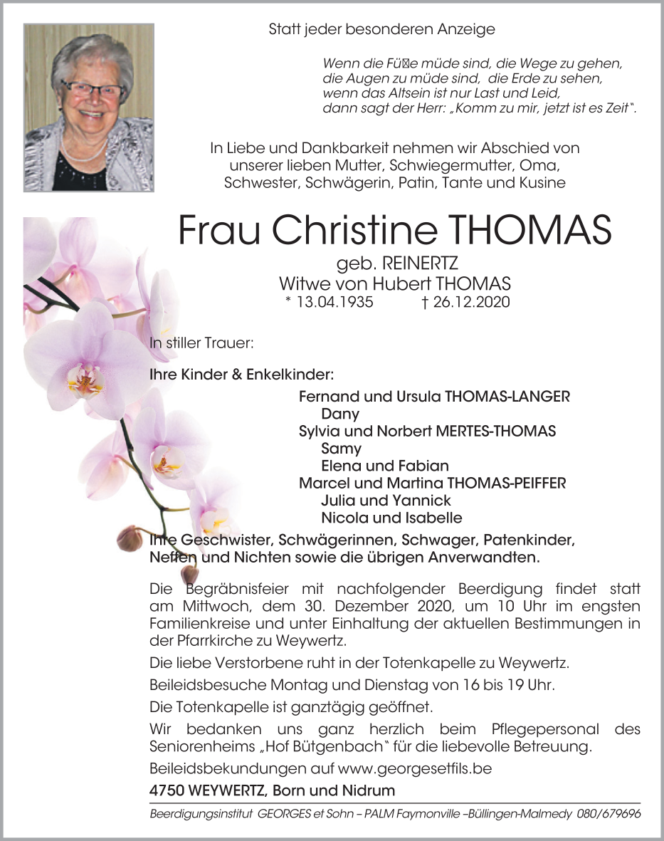 Madame Christine REINERTZ veuve de Hubert THOMAS