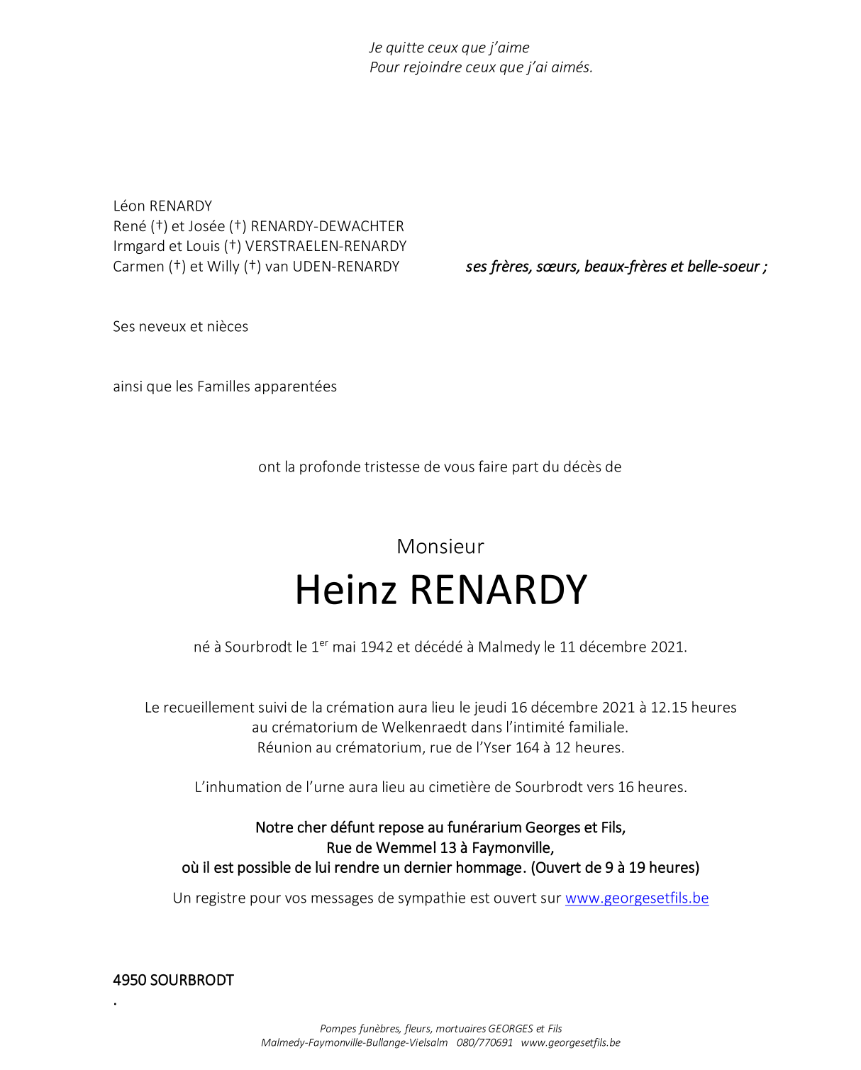 Né à Sourbrodt (4950) le vendredi 1 mai 1942
