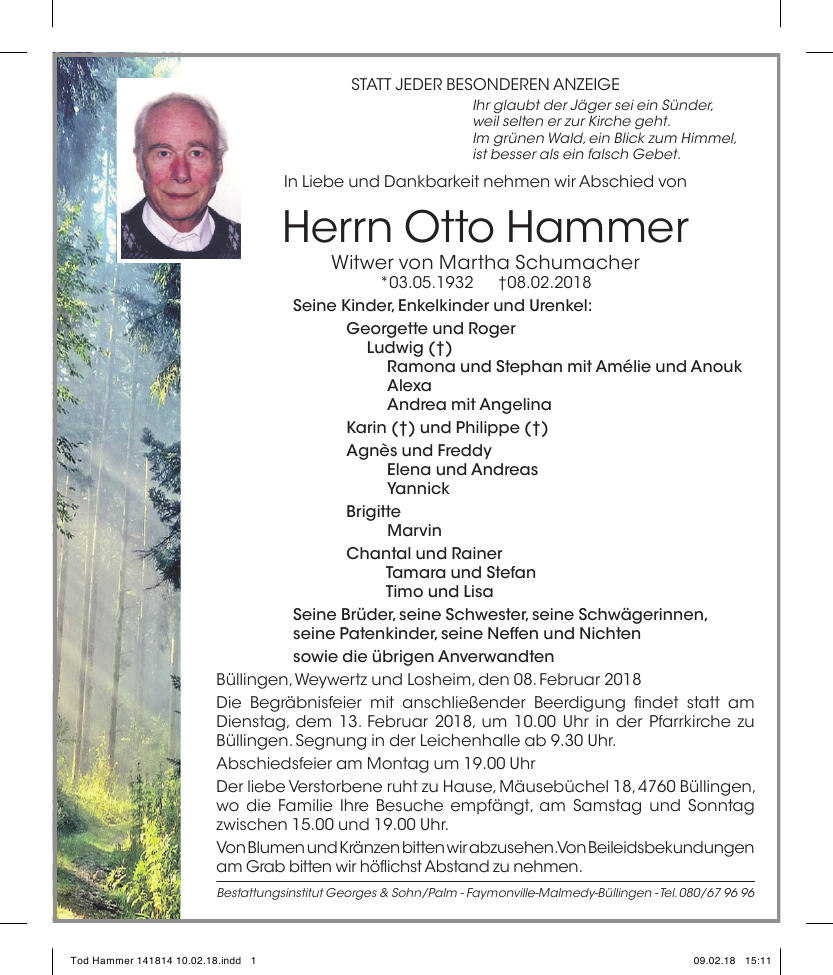 Décédé à Bullange (4760) le jeudi 8 février 2018 à l'âge de 85 ans