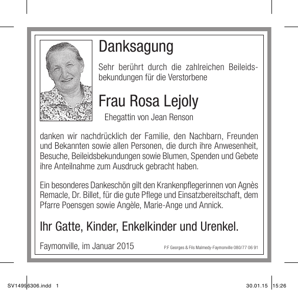 Madame Rosa LEJOLY épouse de Jean RENSON